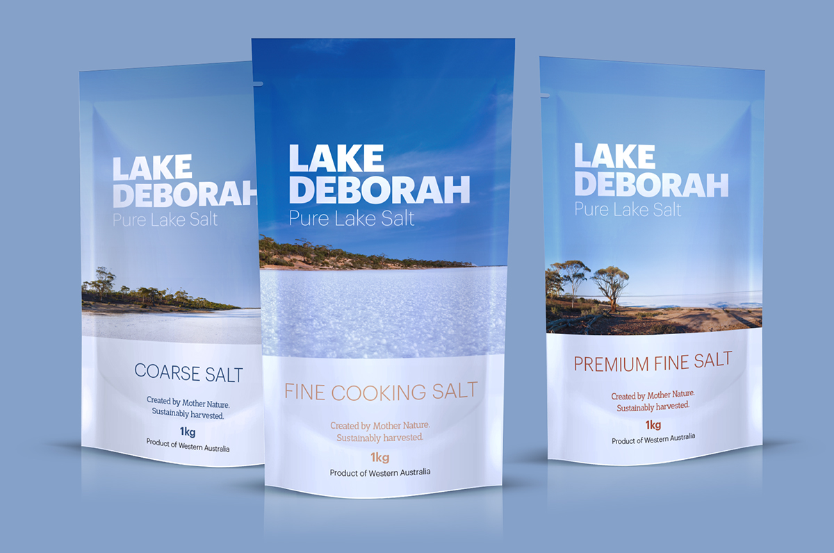 We were engaged by Western Salt Refinery to create a brand for their unique lake salt. The project involved naming, logo design, writing of a brand story, and packaging. A photograph of the pure blue sky, red earth and natural white lake was chosen for the packaging. The bold slabs of colour make the pack stand out on shelves, and show how pristine and free of pollution the remote outback is.